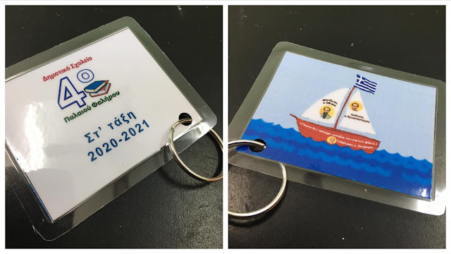 Οι δασκάλες της ΣΤ΄ τάξης Κάτια Λαμπροπούλου (ΣΤ1) και Ντίνα Κουβέλου (ΣΤ2) δώρισαν στους μαθητές και τις μαθήτριες τους ένα αναμνηστικό μπρελόκ με τους Τρεις Ιεράρχες.
